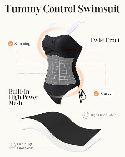 • Tummy Control Swimsuit: Twist front ruched one piece swimsuit,built-in power mesh provides obvious effect on tummy control.this design creates flattering curves and make you look more slimming.
