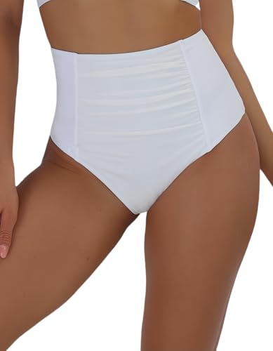 Women's High Waisted Bikini Bottom Ruched Tummy Control Swimsuits Full Coverage Swim Bottoms 5