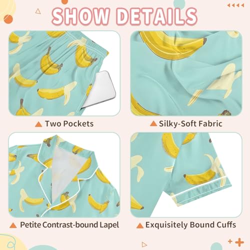 HOT ! Delicious Cute Banana Summer Satin Pajama Set, Cute Button-Down Sleepwear Pj Set for Sleep Wears