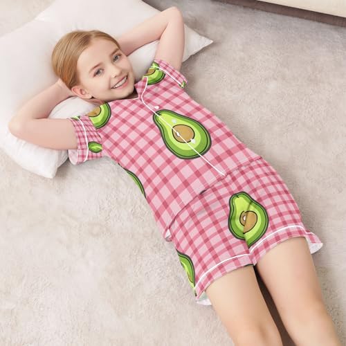 senya Pajama Sets Silky Button Down Nightwear Sleepwear Size 5-14 Years Pink Checkered Avocado 5