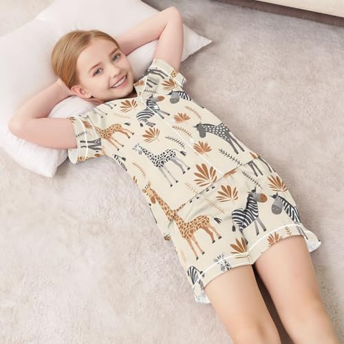 ALAZA African Animal Zebra Giraffe Satin Pajamas Set Short Sleeve Button Down Sleepwear Summer Pjs 2 Piece 1