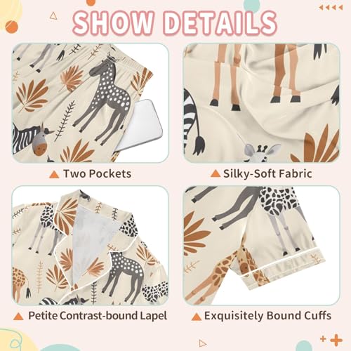 ALAZA African Animal Zebra Giraffe Satin Pajamas Set Short Sleeve Button Down Sleepwear Summer Pjs 2 Piece 4