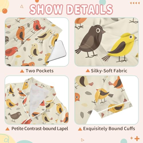 ALAZA Cute Cartoon Bird Pajamas Satin Pajama Set Short Sleeve Button Down Sleepwear 6