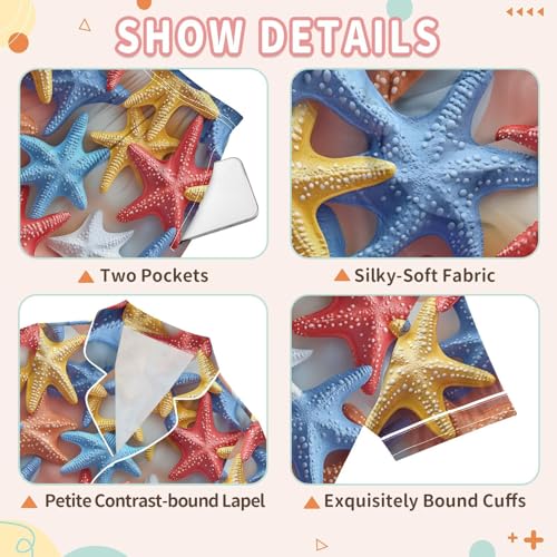 ALAZA Starfish 3d Colorful Satin Pajamas Set Short Sleeve Button Down Sleepwear Summer Pjs 2 Piece 4