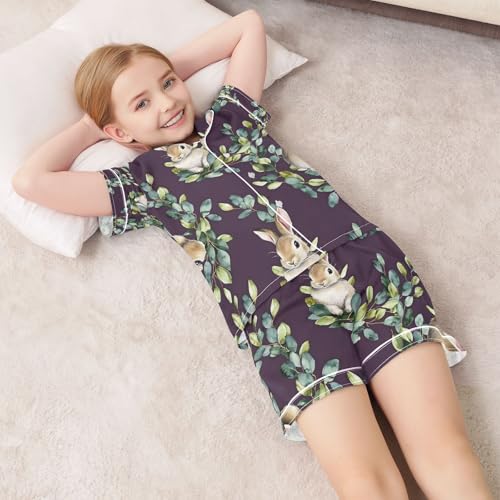 senya Rabbit on Branches A Satin Summer Pajama Sets Silk Short Sleeve Button Down Sleepwear 4