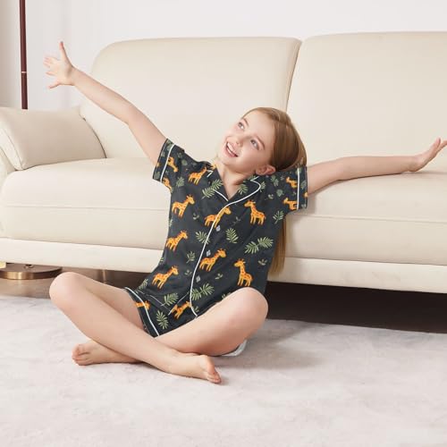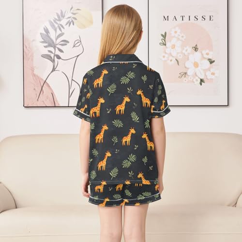 senya Cute Giraffe Leaves 1 Satin Summer Pajama Sets Silk Short Sleeve Button Down Sleepwear 6