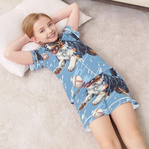 ALAZA Baseball Dog Blue Satin Pajamas Set Short Sleeve Button Down Sleepwear Summer Pjs 2 Piece 2