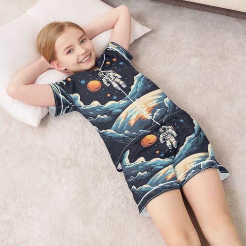ALAZA Space Astronaut Funny Satin Pajamas Set Short Sleeve Button Down Sleepwear Summer Pjs 2 Piece 1