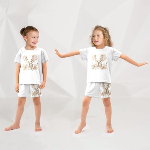 Floral Elephant Beige Pajama Set Short Sleeve Summer Pajamas Shorts Sets PJ Clothes Set Soft 5Y 1