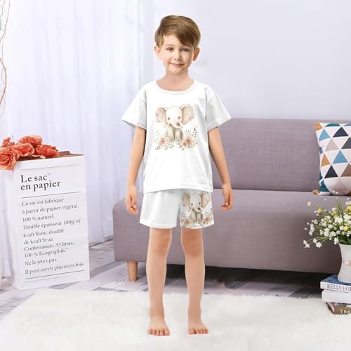 Floral Elephant Beige Pajama Set Short Sleeve Summer Pajamas Shorts Sets PJ Clothes Set Soft 5Y 6