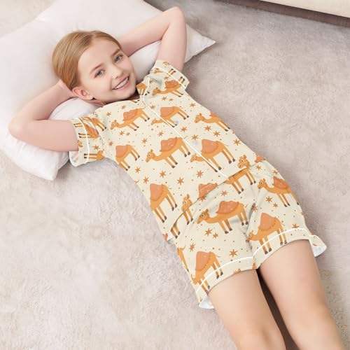 ALAZA Cute Camel Star Orange Satin Pajamas Set Short Sleeve Button Down Sleepwear Summer Pjs 2 Piece 1