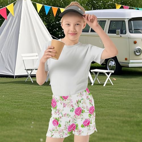 Girls Floral Pink Roses Athletic Shorts Comfy Summer Clothes Teens Pajamas Running Shorts, X-Small 6