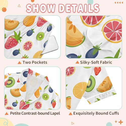 HOT ! ALAZA Kiwi Fruit Strawberry Pajamas Satin Pajama Set Short Sleeve Button Down Sleepwear