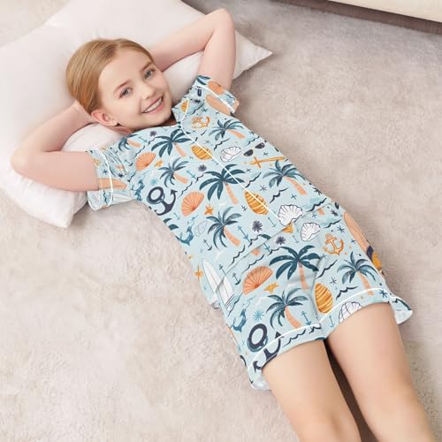 ALAZA Surfboard Palm Tree Anchor Seashell Pajamas Satin Pajama Set Short Sleeve Button Down Sleepwear 7