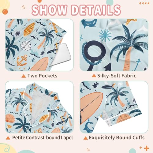 ALAZA Surfboard Palm Tree Anchor Seashell Pajamas Satin Pajama Set Short Sleeve Button Down Sleepwear 6