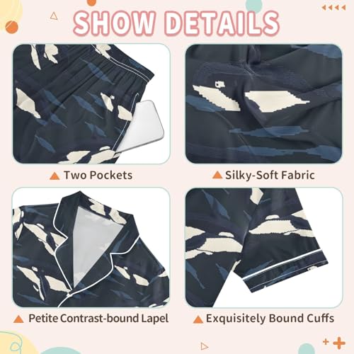 ALAZA Whale Ocean Wave Satin Pajamas Set Short Sleeve Button Down Sleepwear Summer Pjs 2 Piece 7