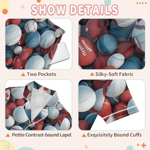 ALAZA Red Blue Ball Soccer Baseball Satin Pajamas Set Short Sleeve Button Down Sleepwear Summer Pjs 2 Piece 4