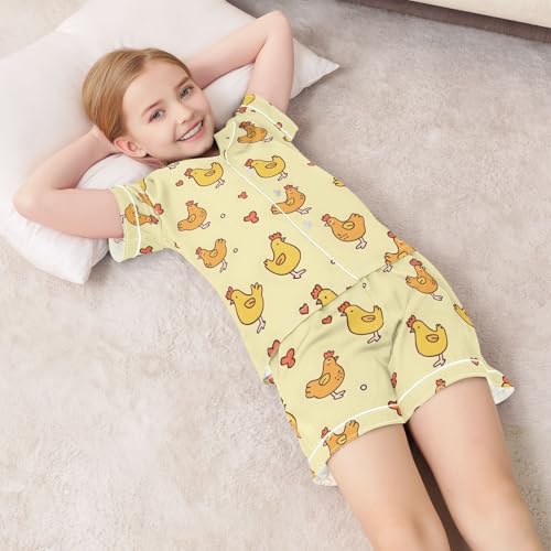 ALAZA Cute Chicken Love Heart Pajamas Satin Pajama Set Short Sleeve Button Down Sleepwear 7