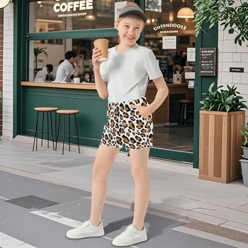 Girls Athletic Shorts Classic Brown Leopard Print White Casual Pajama Sleepwear Teen Kids Summer Clothes, X-Small 4