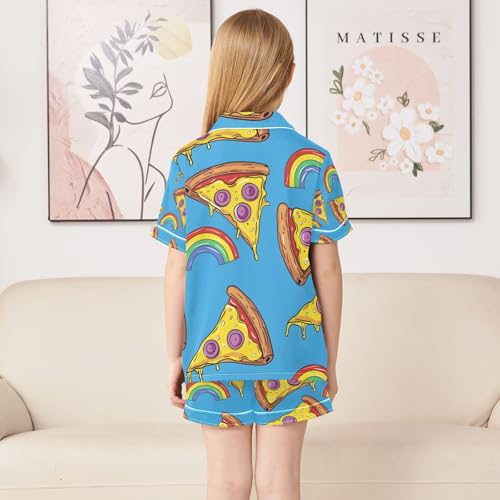 senya Pizza and Rainbow Satin Summer Pajama Sets Silk Short Sleeve Button Down Sleepwear 1