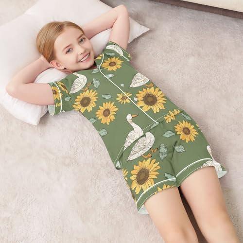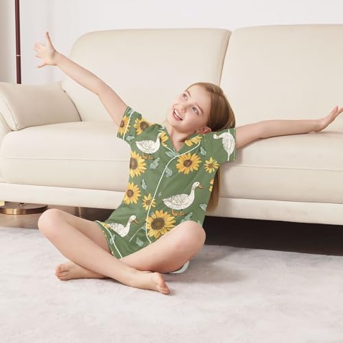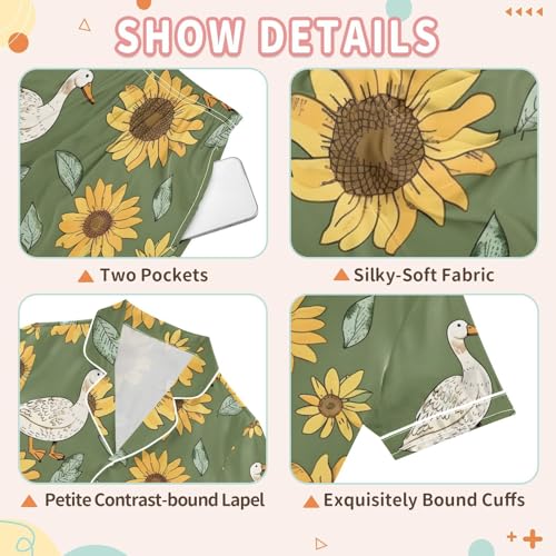 ALAZA Duck Sunflower Pajamas Satin Pajama Set Short Sleeve Button Down Sleepwear 6