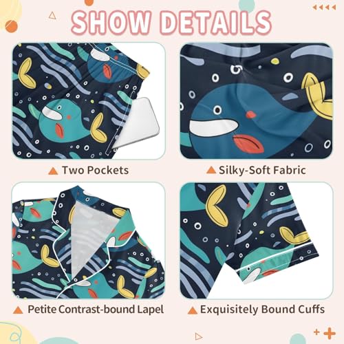 ALAZA Whale Bubble Wave Pajamas Satin Pajama Set Short Sleeve Button Down Sleepwear 3