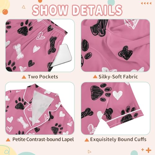 Hand Drawn Footprint Pattern Summer Satin Pajama Set, Cute Button-Down Sleepwear Pj Set for Sleep Wears 1
