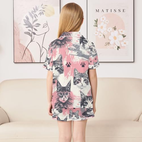 senya Hand Painted Cat Satin Summer Pajama Sets Silk Short Sleeve Button Down Sleepwear 4