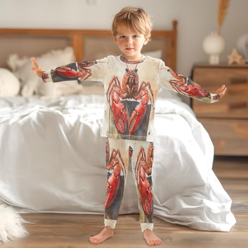 Pajama Sets Long Sleeve Cute Crawfish Watercolor Soft Comfy Sleepwear 2 Piece PJS 3-8T 4