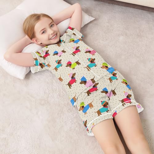 • 🌷 Pattern - Various cute bright colorful pattern design let your little one more stylish. Cute and vibrant patterns of dogs, cats, capybara, hearts and so on. This summer pajama sets can add some playful and funny elements to bedtime.
