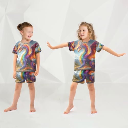 Pajama Sets Short Sleeve Vivid Dragon Artwork Print Soft Cotton Summer Sleepwear 2 Piece PJS Size 5-14T 6