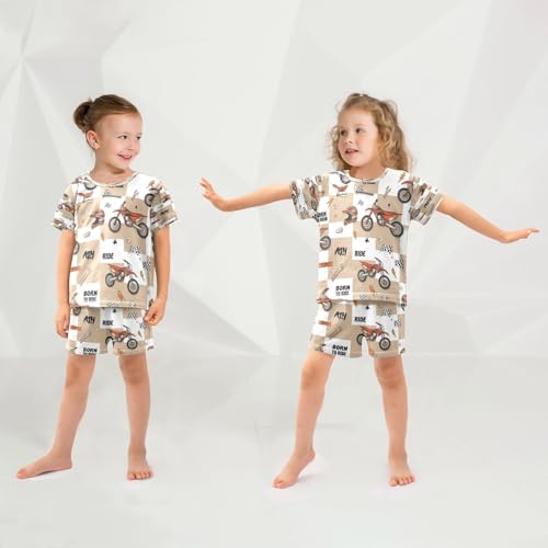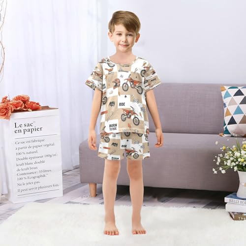 Pajama Sets Short Sleeve Motorcycle Theme Pattern Design Soft Cotton Summer Sleepwear 2 Piece PJS Size 5-14T 6