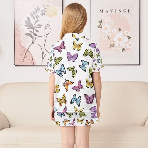 senya Floral Butterflies and Flowers Satin Summer Pajama Sets Silk Short Sleeve Button Down Sleepwear 2