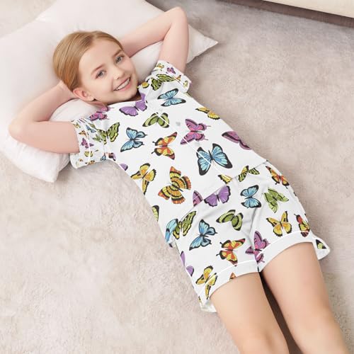 HOT ! senya Floral Butterflies and Flowers Satin Summer Pajama Sets Silk Short Sleeve Button Down Sleepwear