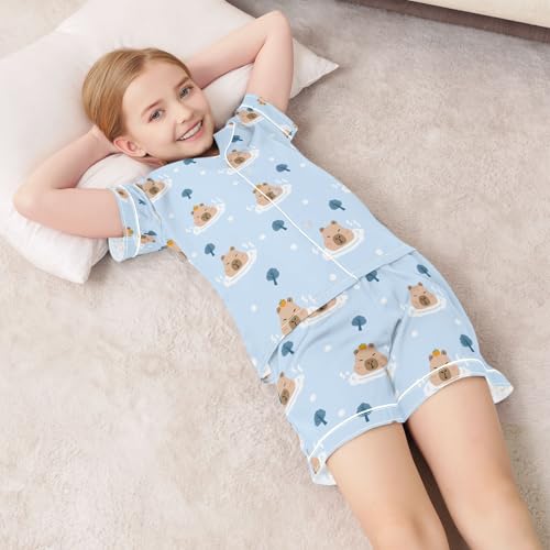 HOT ! senya Tropical Bathing Cute Capybara Satin Summer Pajama Sets Silk Short Sleeve Button Down Sleepwear