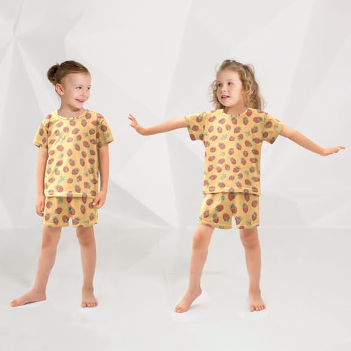 Strawberry Orange Pattern Summer Cute Pajama Sets, Short Sets for Daily Wears and Sleep Wears 2