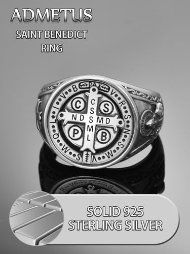 ADMETUS 925 Sterling Silver St Benedict Rings Exorcism Saint Benedict Ring Medalla de San Benito Jewelry Protection Religious Gifts for Men Rings Size 6-15 1