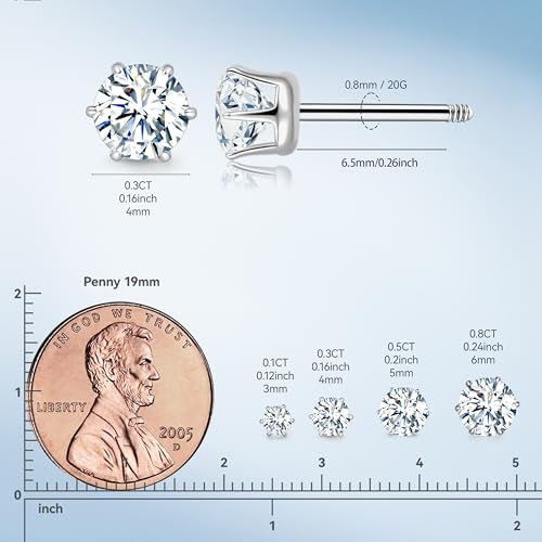 Limerencia Moissanite Stud Earrings G23 Titanium Hypoallergenic Screw Back Moissanite Earrings D Color VVS1 Clarity Jewelry Gifts for Women Men 0.2CT-1.6CT 6