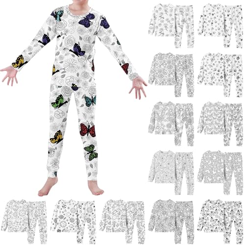 Kids DIY Hand Painted šajamas Boys Girls Cute Funny Black White 2 Piece Home Wear Outfits Long Sleeve š—¦leepwear 6
