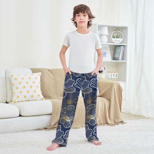 J JOYSAY Floral Outline Blossom Navy Pajamas Pants Soft Long Pajama Bottoms Lounge Sleep Pants Size S-XL 1