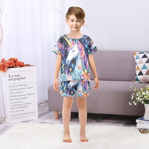 ALAZA Flower Unicorn Leaf Blossom Pajamas Set Short Sleeve Cotton Sleepwear Summer Pjs 2 Piece 5-14Y 2