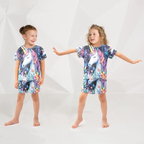 More information about ALAZA Flower Unicorn Leaf Blossom Pajamas Set Short Sleeve Cotton Sleepwear Summer Pjs 2 Piece 5-14Y