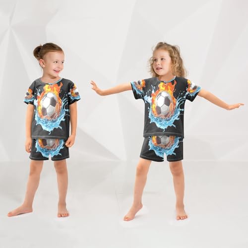 ALAZA Soccer Football Water and Fire Black Pajamas Set Short Sleeve Cotton Sleepwear Summer Pjs 2 Piece 5-14Y 2