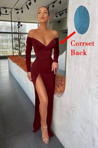 More information about Long Sleeve Prom Dresses for Women 2023 Mermaid Formal Gown with Sleeves Satin Off Shoulder Evening Dress with Slit JS0022