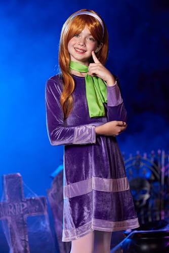 • Set Includes – Includes a purple dress, green scarf, matching headband, orange wig with cap, and stockings for a ready-to-wear Halloween look.