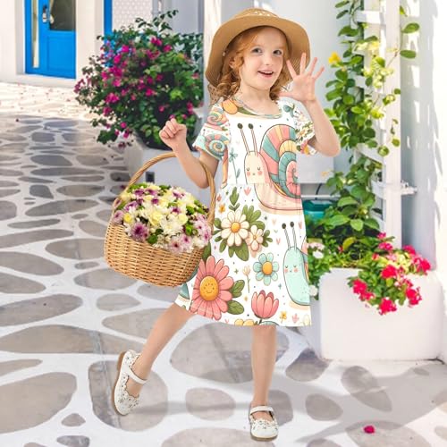 Little Girls Dress Short Sleeve Toddler Summer Sundress 2-8T Colorful Daisy Snail 6