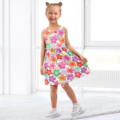 Girls Casual Dress Colorful Hibiscus Flower Seamless Cotton Summer Clothes for Kids 2T-8Y 6