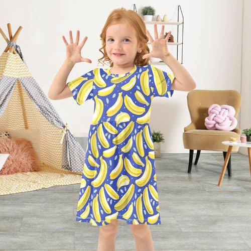 Girls' Short-Sleeve Dress, Banana Fruit Print Summer Dresses, Toddler Casual Sundress 2T 4