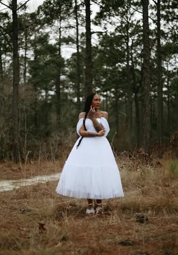 • Features:Tulle dotted prom dress,with off the shoulder, princess sweetheart neckline,a-line puffy tea length tulle dress,corset built in bra,high empire waist,midi prom dress with short sleeves ankle length, cute flowy hem in gentle countryside,elegant backless.