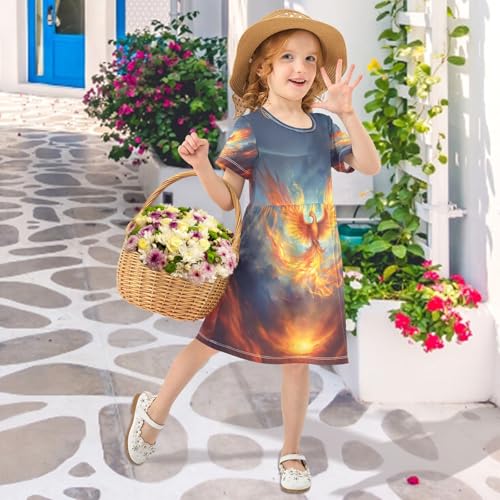 ALAZA Fire Phoenix Girls Dress Short Sleeve Toddler Casual Dresses Summer Sundress 2-8T 2